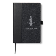 Блокнот формату A5, елегантно виготовлений із переробленого фетру, має ефект меланжу та вбудований тримач для ручок. Він містить 80 аркушів або 160 сторінок переробленого паперу щільністю 70 г/кв. Сертифікація GRS (Global Recycled Standard) гарантує, що весь ланцюжок постачання перероблених матеріалів сертифіковано. Загальний вміст вторинної сировини базується на загальній вазі продукту. Цей продукт містить 83% переробленого паперу, сертифікованого GRS, і 7% повсті, сертифікованого GRS.
