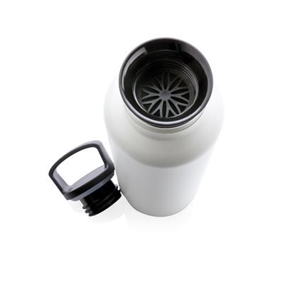 Герметична вакуумна пляшка з подвійними стінками, виготовлена з нержавіючої сталі з порошковим покриттям. Кришка 2-в-1 з фільтром, відмінно підходить для гарячого чаю або води з добавками. Стандартне горлечко ідеально для неспішного потягування вашого напою або додавання кубиків льоду. Пляшка розрахована на довгий термін служби, стане в нагоді вам в будь-який час року. Внутрішній шар зі сталі марки 304 і зовнішній марки 201 зберігає ваші напої гарячими до 5 годин і холодними до 15 годин. Обсяг: 600 мл.