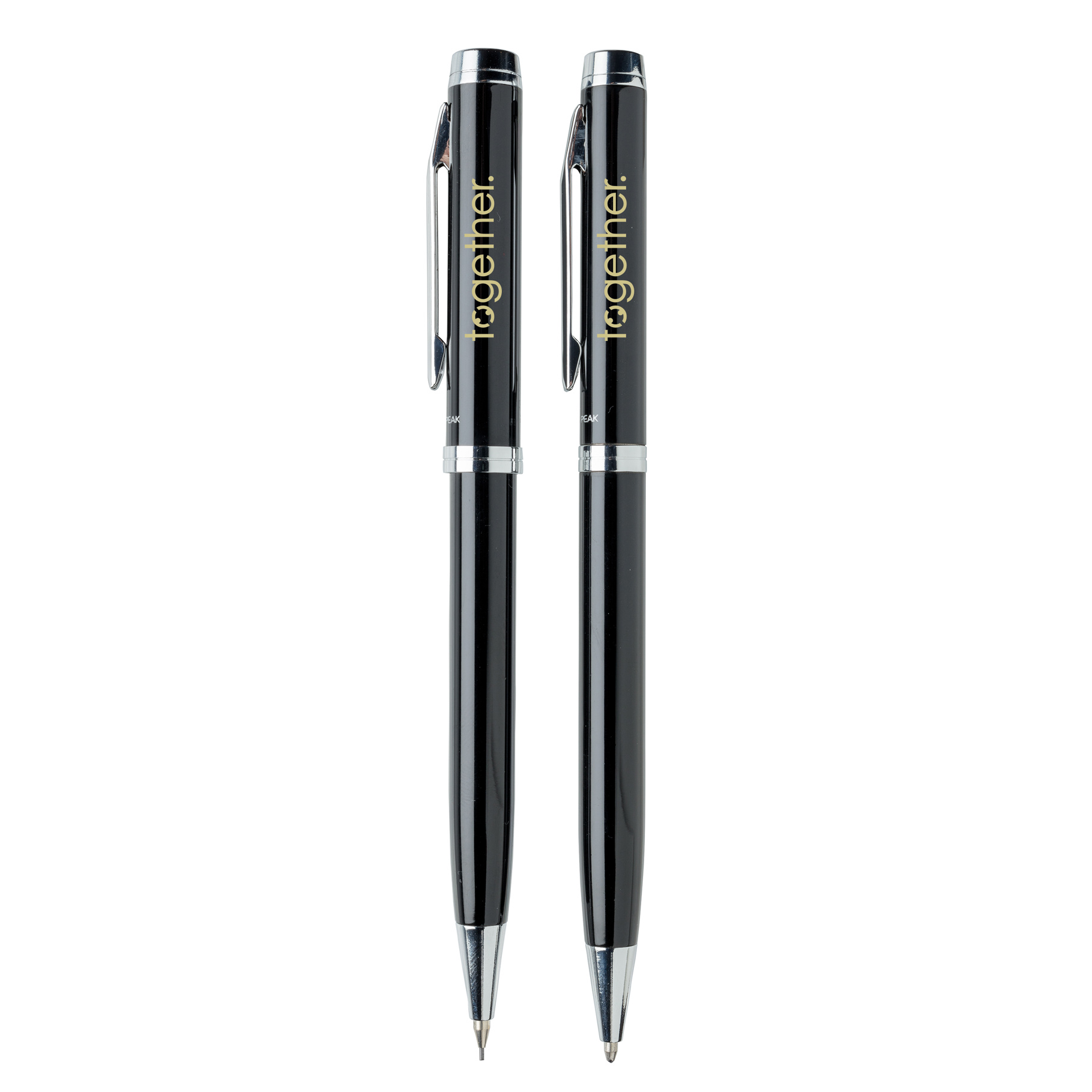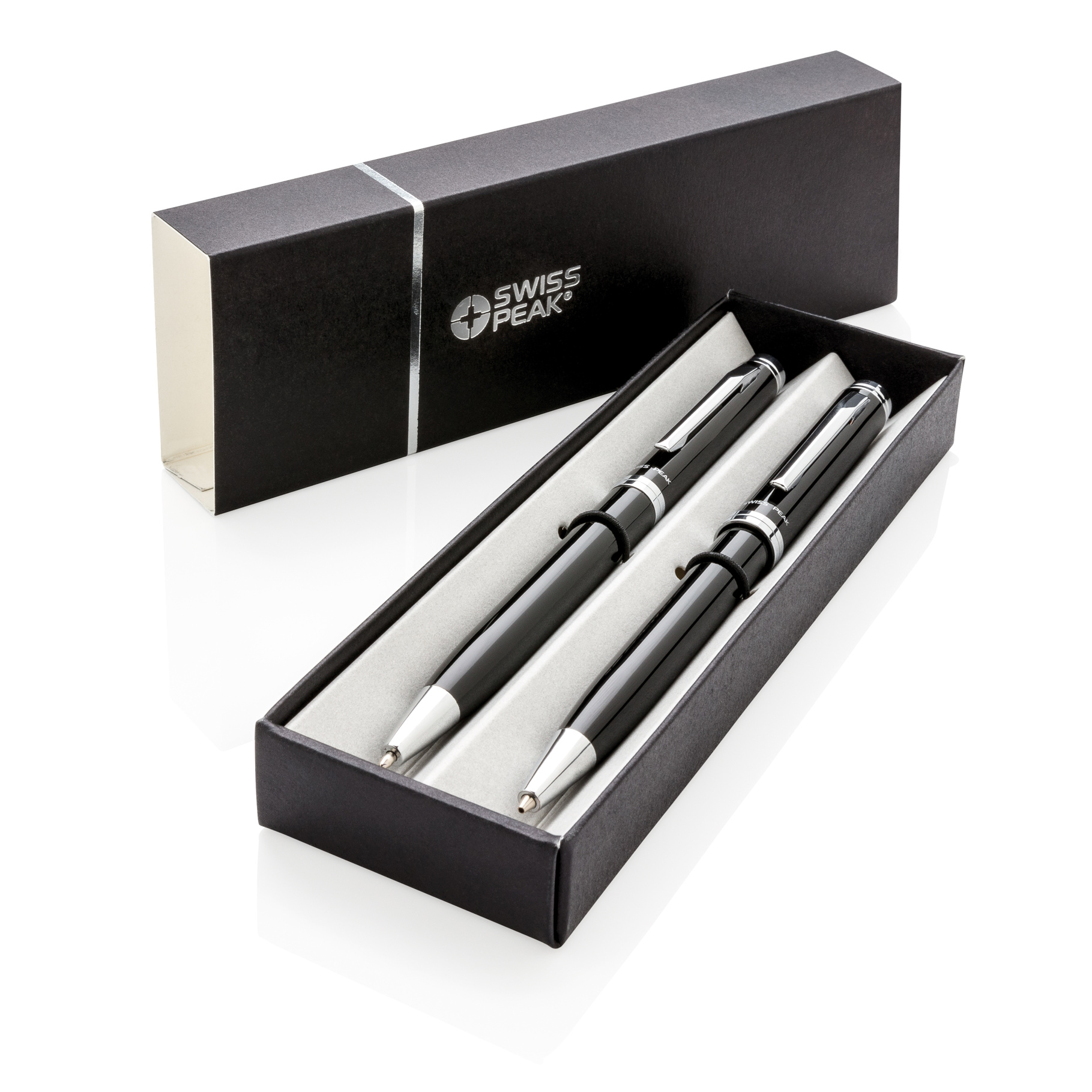 Підвищіть свій досвід письма за допомогою Swiss Peak Luca RCS Recycled Brass Deluxe Pen Set. Розроблений з урахуванням вишуканості, цей набір містить гладкі чорні ручки із золотими акцентами, включаючи верхню частину, верхнє кільце, кліпсу, середнє кільце та наконечник. Виготовлені з 55% сертифікованої RCS переробленої латуні, ці ручки пропонують як елегантність, так і стійкість. Кулькова ручка працює з поворотним механізмом і включає в себе поповнення синім чорнилом, пише шириною 1,0 мм до 1200 м. Ручка має синє гелеве чорнило, що пропонує 800 м гладкого письма на тій же ширині 1,0 мм. Обидві ручки оброблені сталевим затискачем і вигравірувані логотипом Swiss Peak на середньому кільці. Представлений у подарунковій коробці преміум-класу, цей набір випромінює розкіш та стиль.
