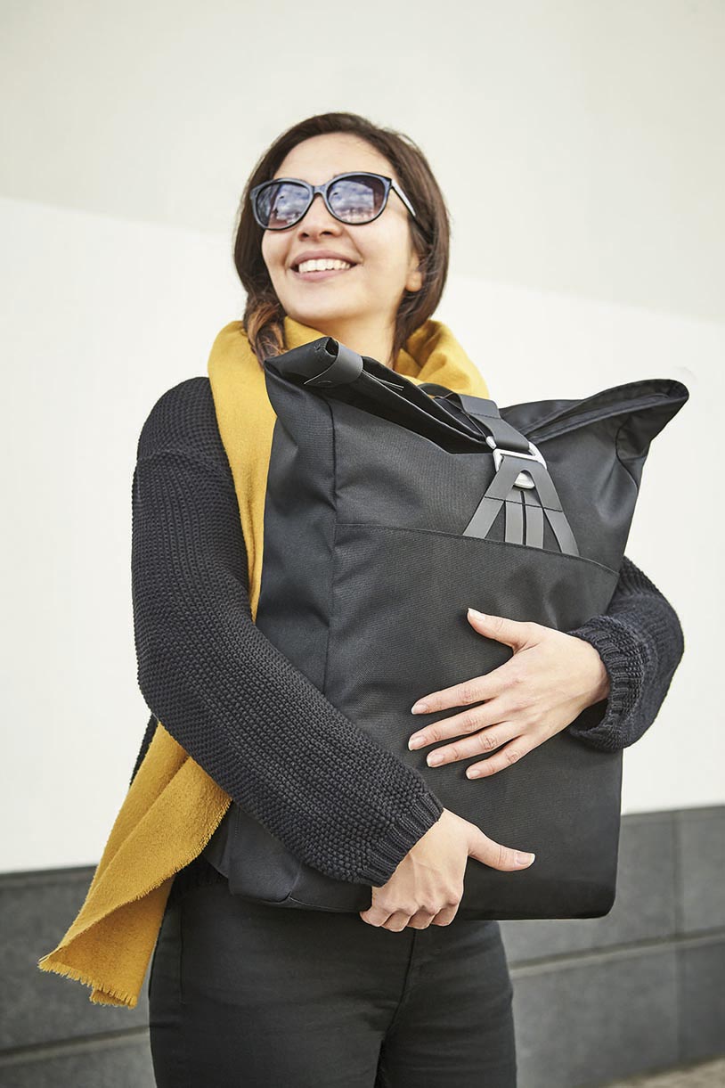 Модний рюкзак для ноутбука з яскравою застібкою; основне відділення з блискавкою і захистом для блискавки; відділення для ноутбука; два плоских внутрішні кишені; плоский велика внутрішня кишеня на блискавці; зовнішній боковій кишені на блискавці; майстерно зшита спина; регульовані по довжині, м'які плечові ремені з регульованим по висоті і ширині нагрудним ременем; ручка висота (см): 42 ширина (см): 34 глибина (см): 11