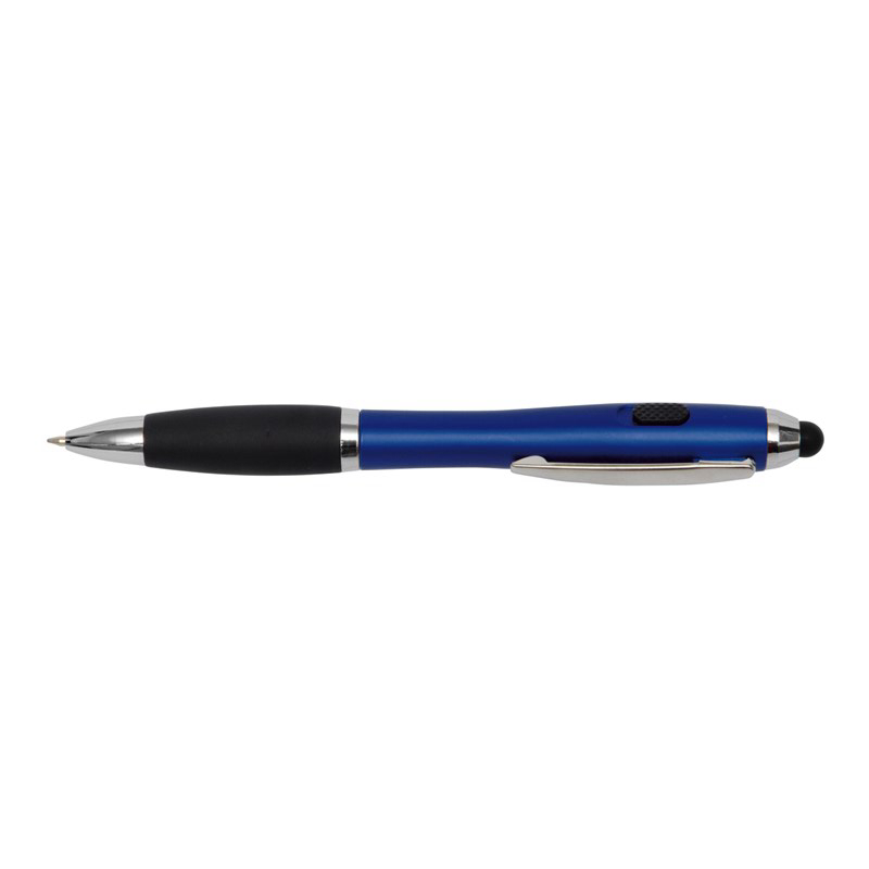 Кулькова ручка SWAY LUX з поворотним механізмом, білим світлодіодом для освітлення гравіювання, вимикачем підсвічування LED, зі стилусом для сенсорних екранів смартфонів і планшетів, сині чорнило.